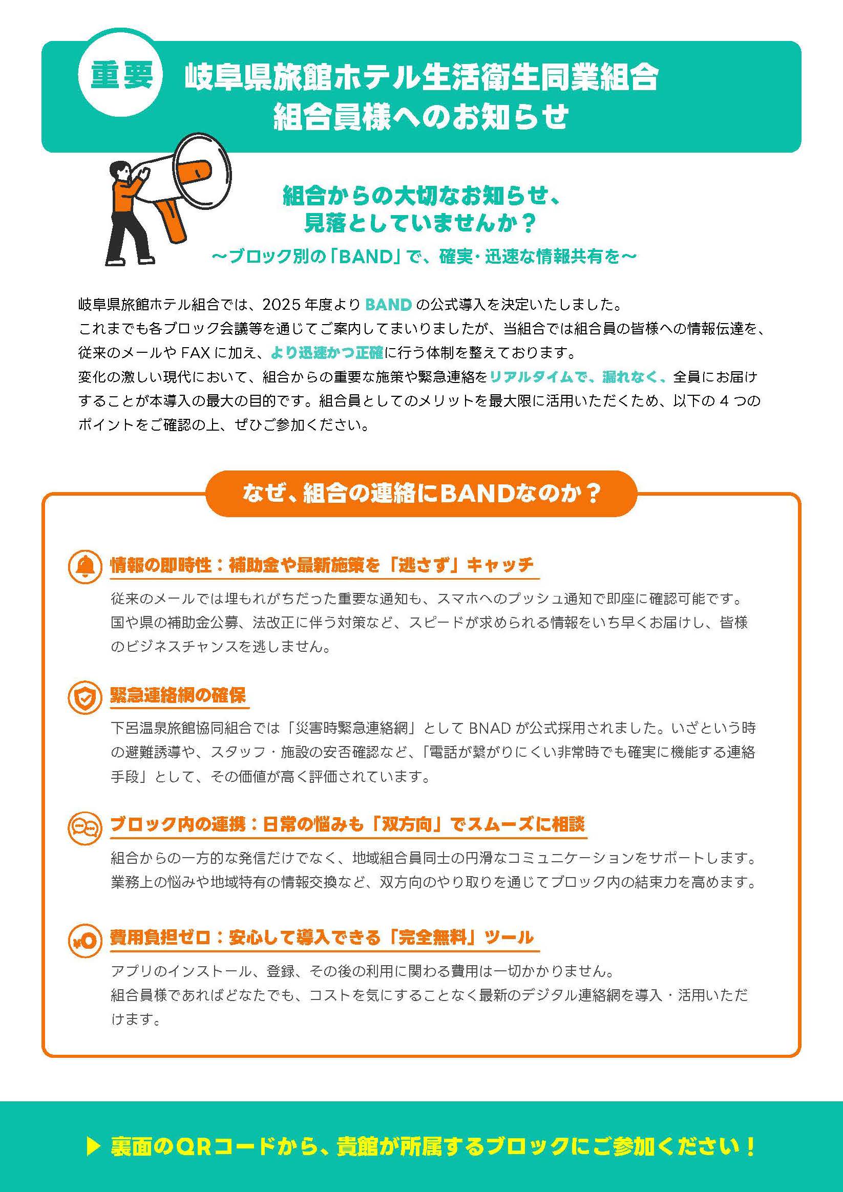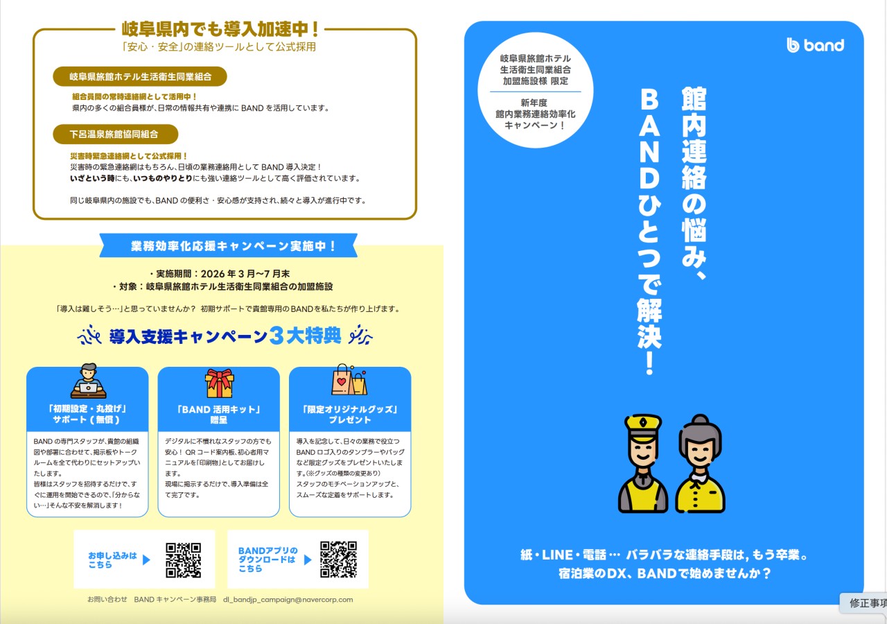 岐阜県旅館ホテル組合では、 2025年度よりBANDの公式導入を決定いたしました。